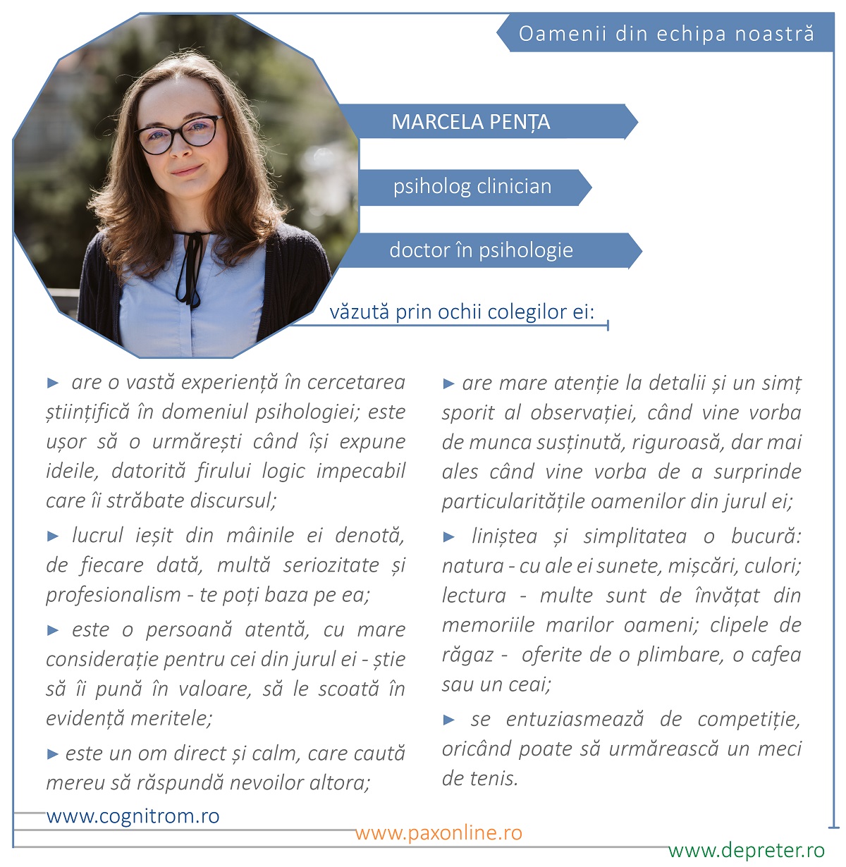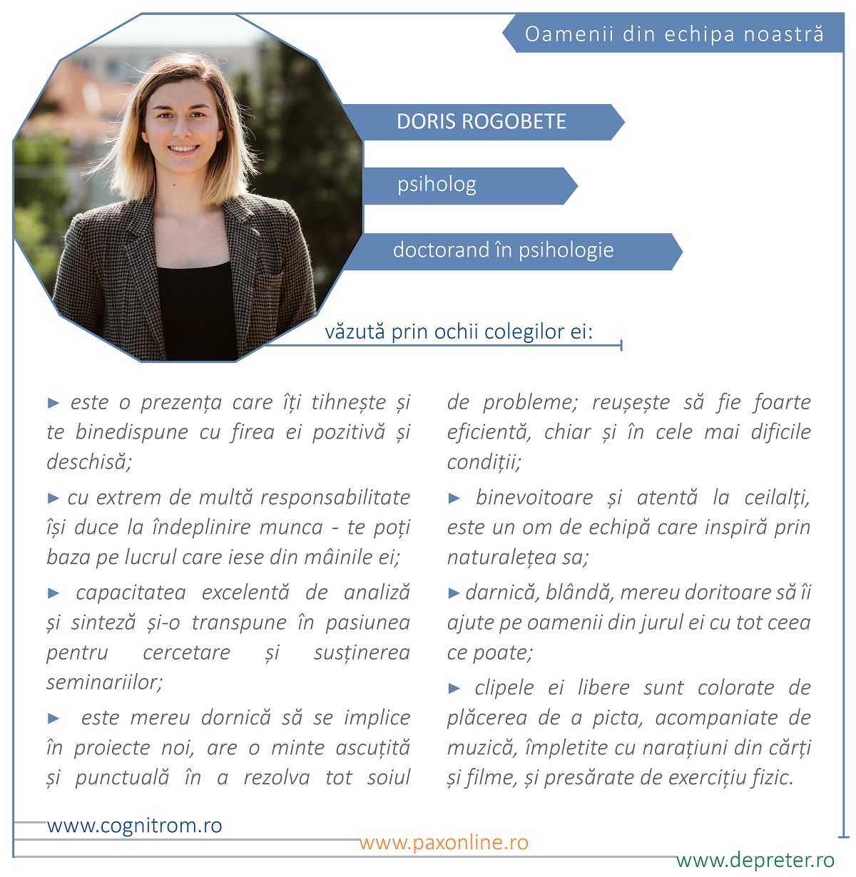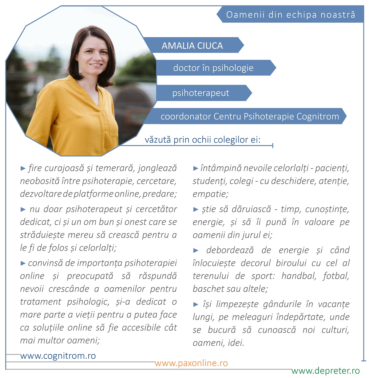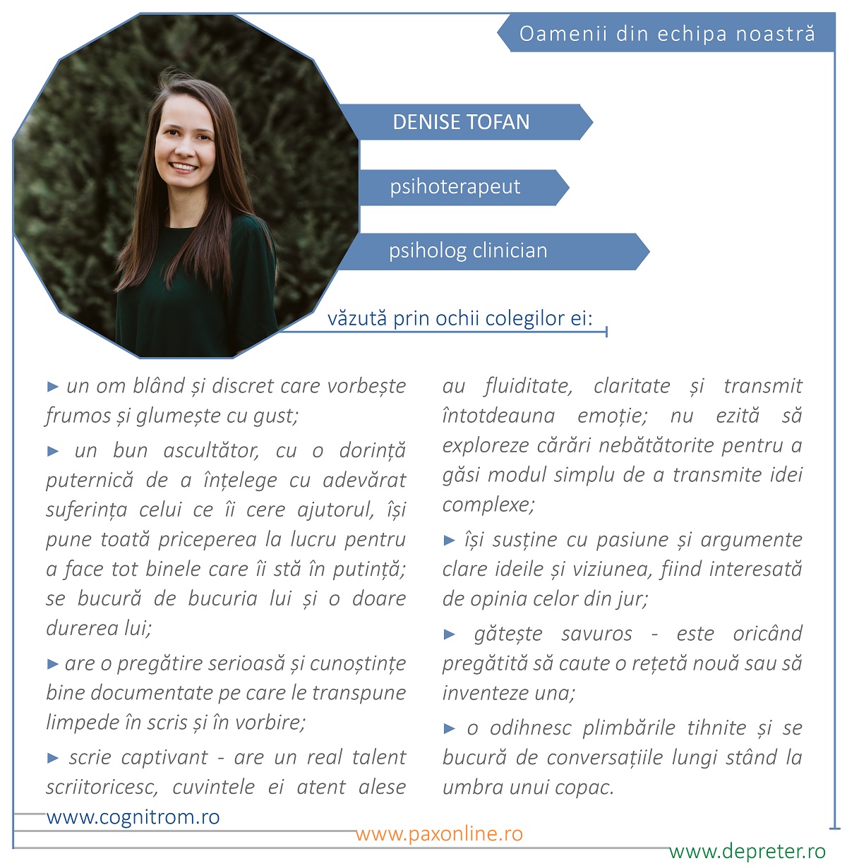 DEPRETER este o clinică online de terapie a depresiei și burnout-ului, dezvoltată de către o echipă de specialiști ai COGNITROM, o organizație de cercetare și dezvoltare acreditată de ANCS.